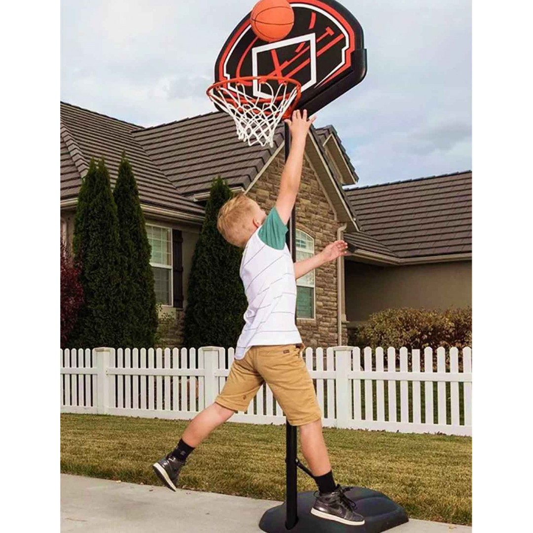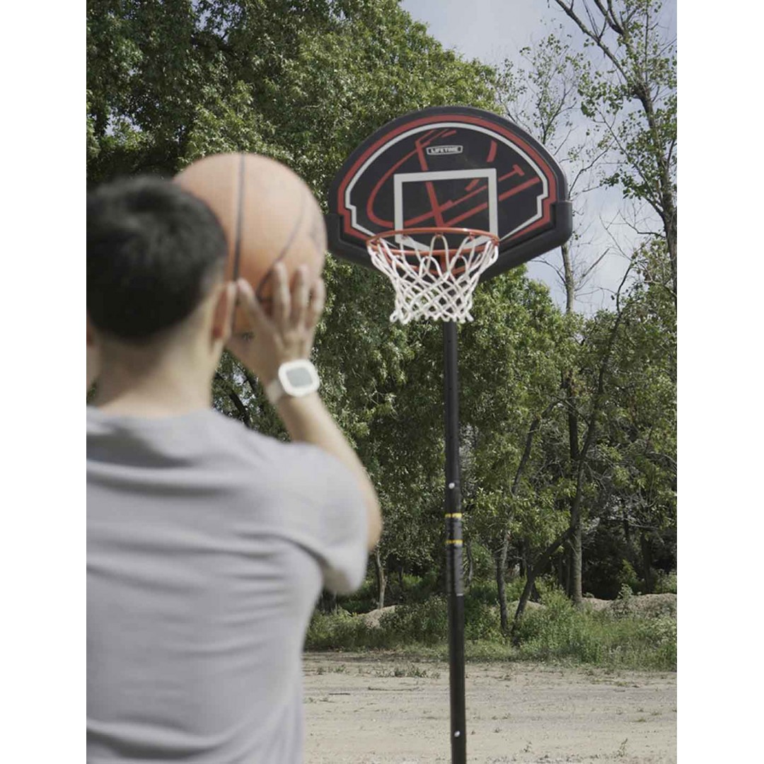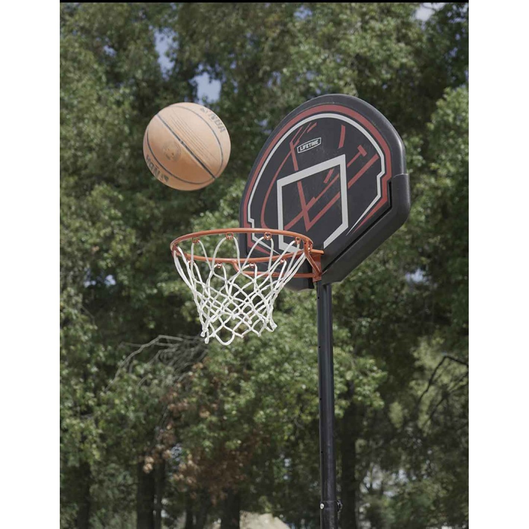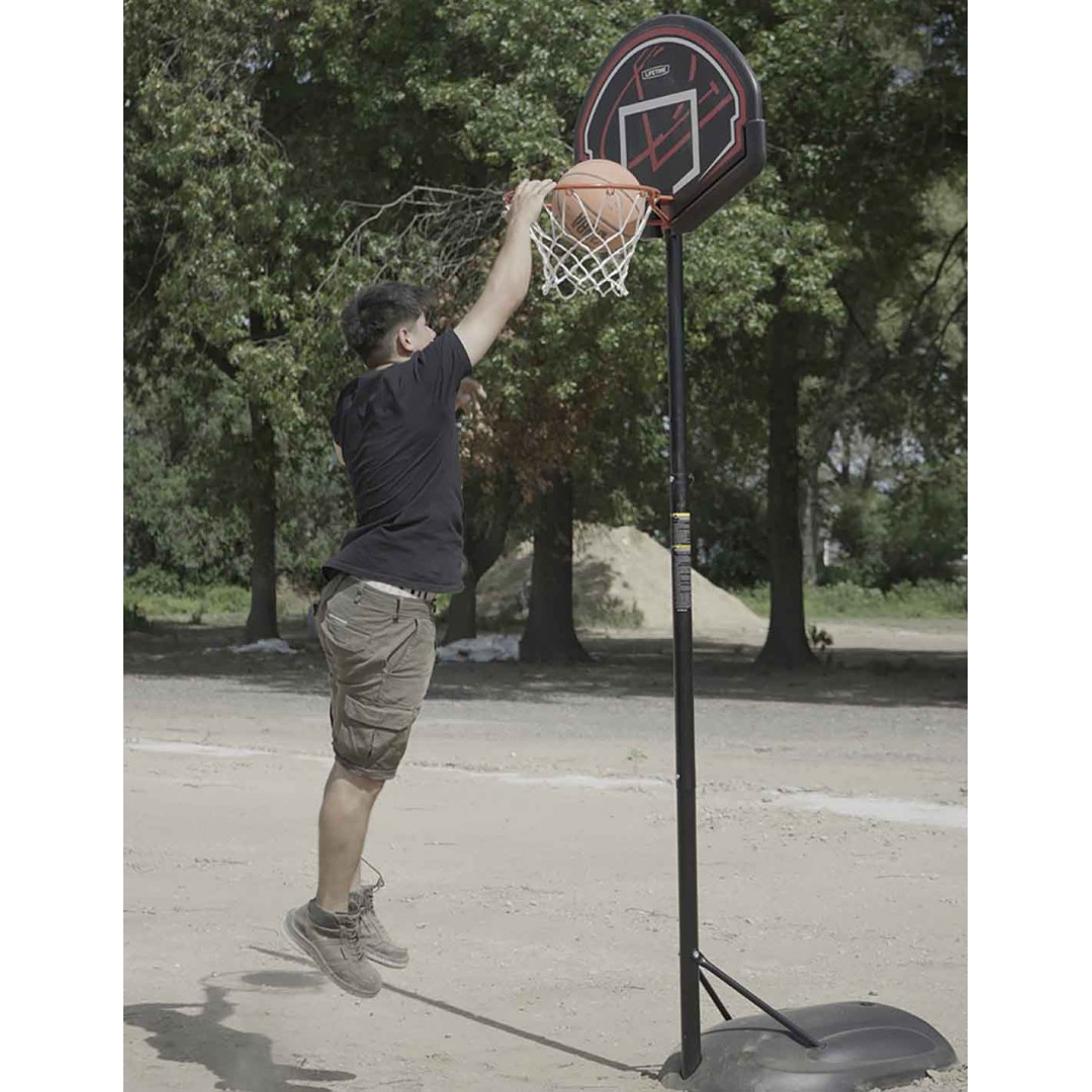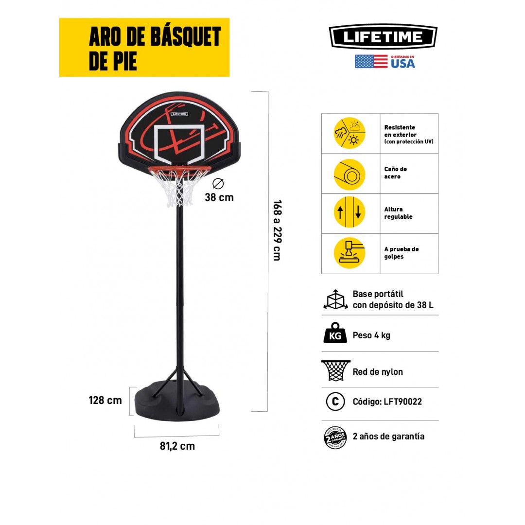 Aro de básquet de pie Lifetime con poste cilíndrico de acero inoxidable, de altura ajustable. Es resistente a la intemperie y a prueba de golpes! Es estable, seguro y portátil, con soporte y ruedas para trasladarlo. El material del tablero tiene protección UV. Ideal para grandes y chicos!