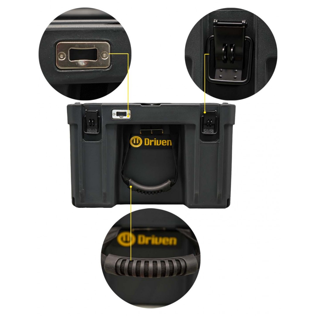 La caja ultra resistente de 86 litros es ideal para expediciones, camping, guardado de herramientas, equipo táctico y almacenamiento seguro. Con cierres reforzados y estructura rígida que cuida tu equipamiento. Es apilable y adaptable a sistemas de montaje en vehículos off road. Su sistema de apertura con amortiguador de gas con brazo articulado, garantiza una apertura y cierre suave y controlado, evitando golpes bruscos y protegiendo tanto al equipo como la estructura. Soporta golpes, polvo, agua y climas extremos, convirtiéndolo en un esencial para tus aventuras. Protección absoluta, seguridad total, confianza extrema!