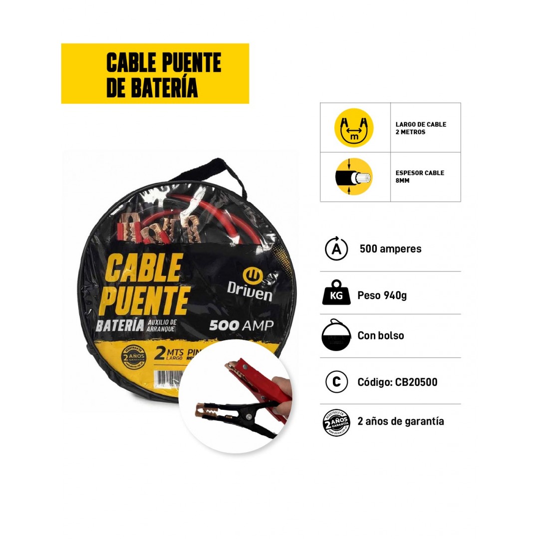 Información sobre el juego de cables puente de bateria 500 amp