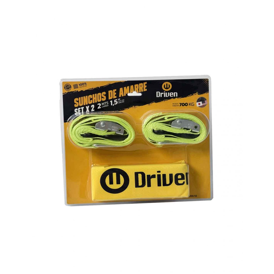 Suncho de amarre de alta calidad, resistente de 3,8 cm x 2 mts de largo. El suncho de amarre de Driven esta preparado para un agarre fuerte y seguro. Resiste un peso total de 700kg. Amarra todo mas rápido y seguro.