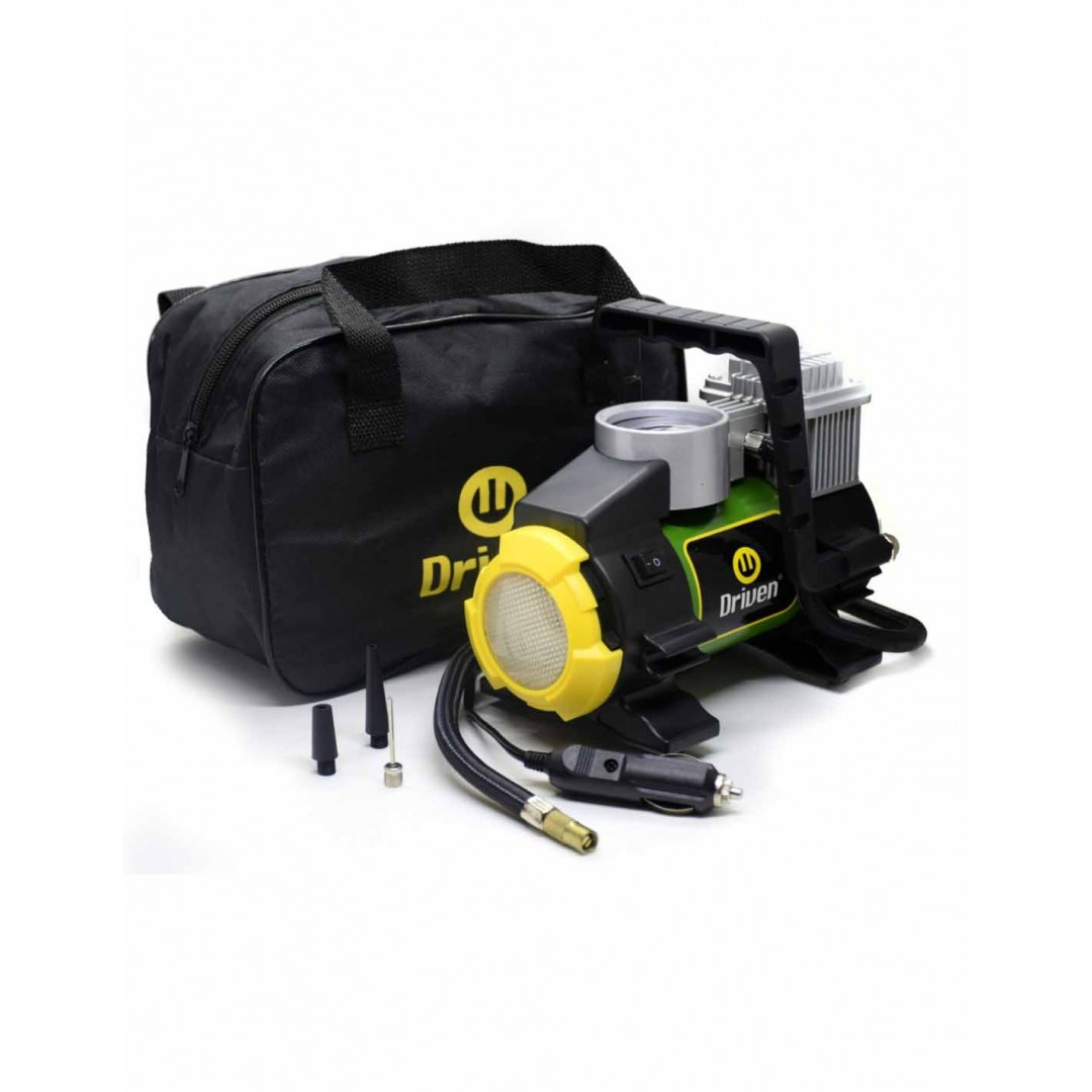 Compresor de aire metálico de 12v y cabezal simple, incluye diferentes picos. Con nuestro compresor de aire 12v mantene siempre inflado tus neumáticos, ideal para autos medianos, motos, bicicletas, pelotas, colchones y mas. Fácil de guardar y trasportar a todos lados, compacto, potente y confiable.