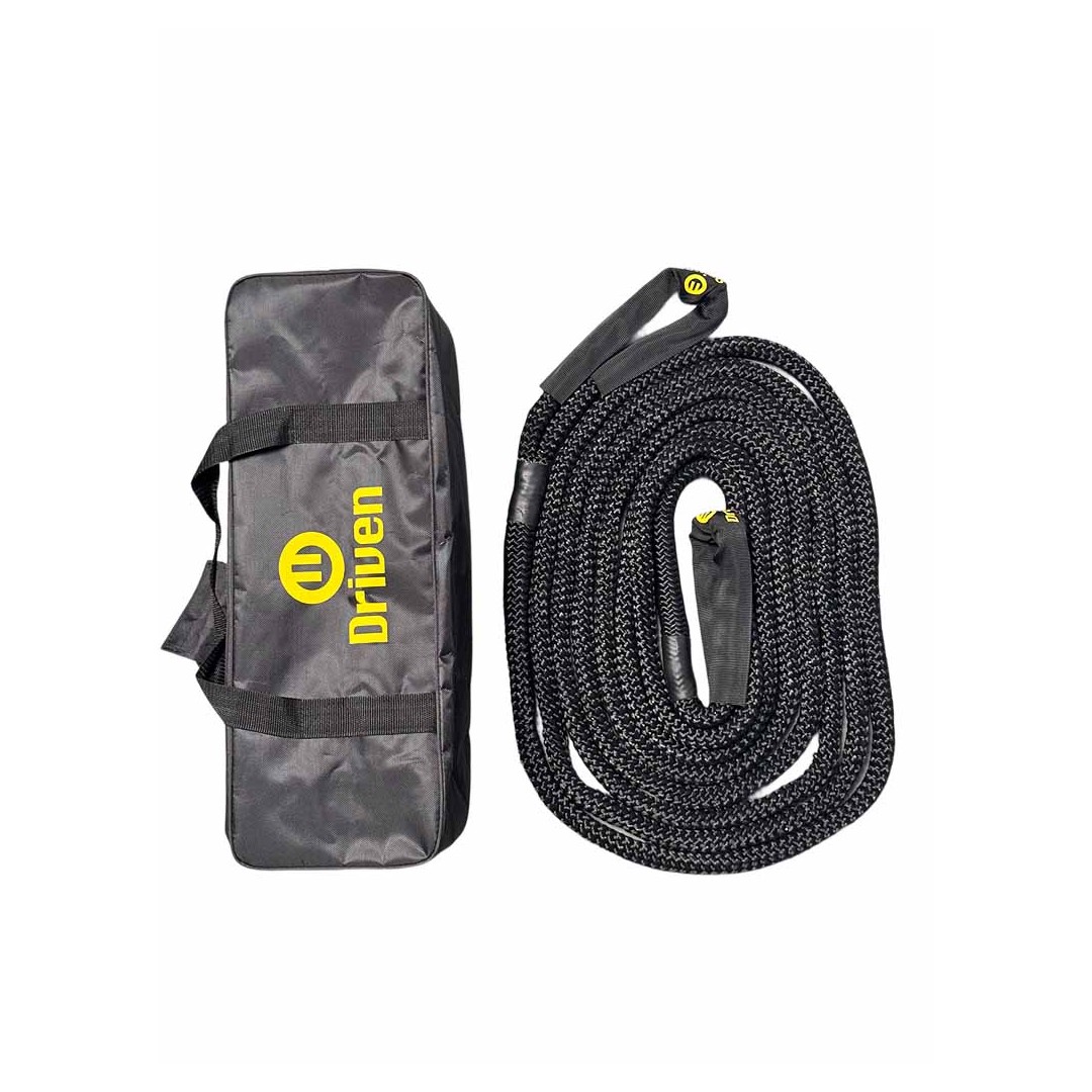 Eslinga de remolque de alta calidad, trenzada de 3 hilos de 20mm x 9 metros de largo, con excelente resistencia a la abrasión para lograr un enganche fuerte y seguro. Resiste un peso total de 10.000 kg. Fuerza brutal, arrastra un camión y sigue intacta. Su diseño trenzado absorbe impactos y distribuye la carga de forma pareja, reduciendo el riesgo de daño a los vehículos. Fuerte, confiable y lista para sacarte de apuros en barro, arena o cualquier terreno difícil.