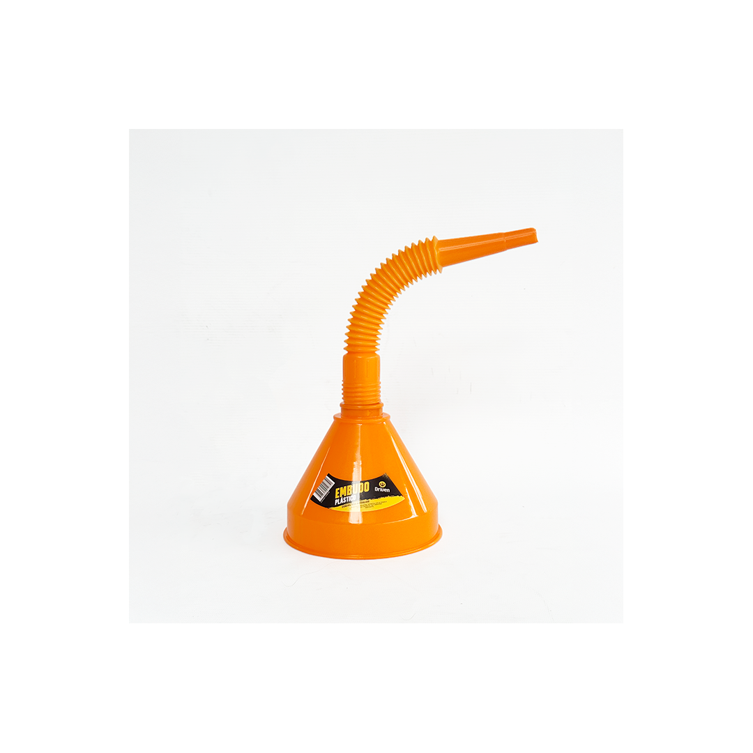 Embudo plástico con manguera flexible que permite mayor movilidad a la hora de manipularlo. Se puede utilizar con cualquier tipo de líquido, ideal aceites.