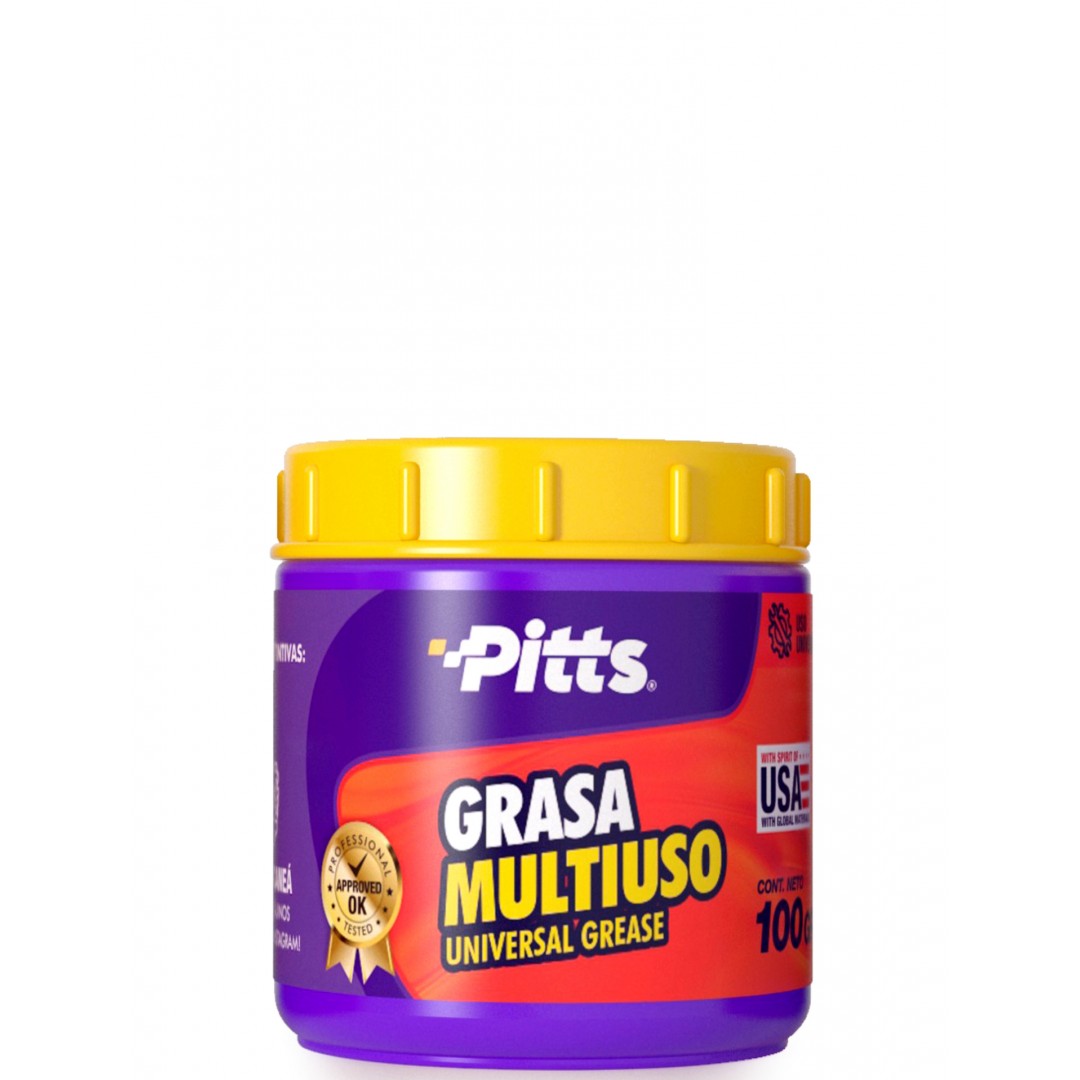 - Grasa multipropósito premium Pitts de 100g. Es el lubricante ideal para distintos tipos de usos, su composición química la hace particularmente estable, y es resistente al estrés mecánico y al agua.