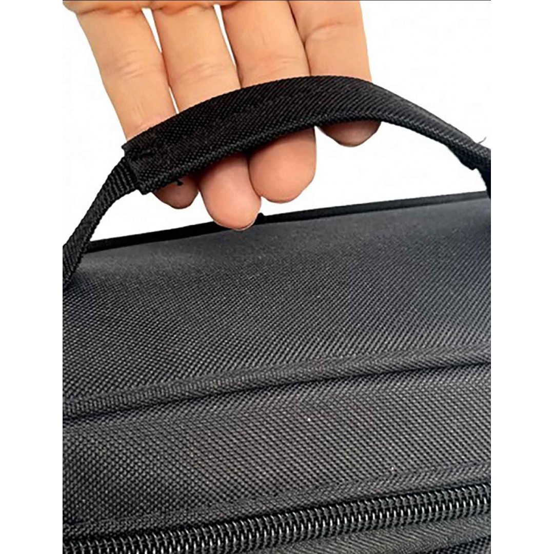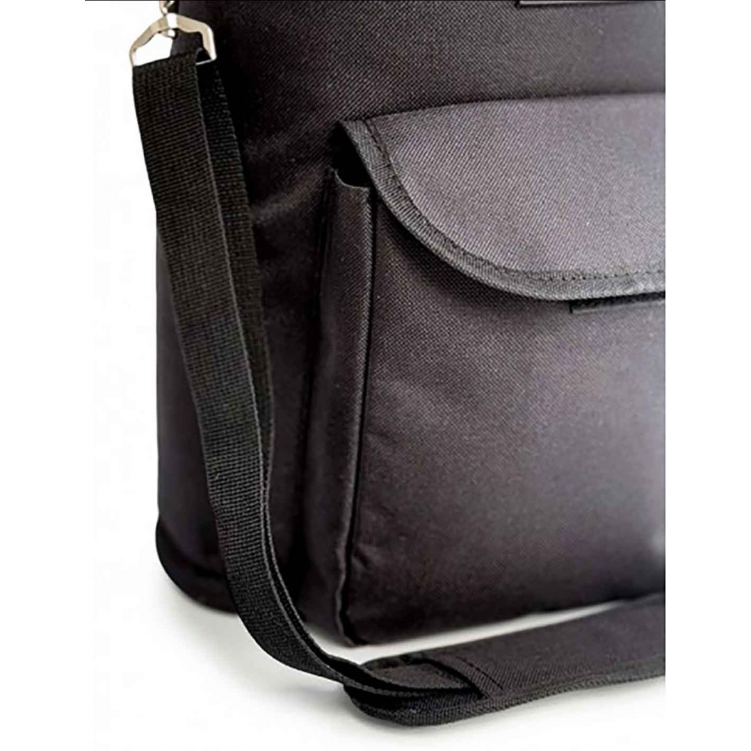 Está realizado con una tela especial, antidesgarro y antipolvo lo que hace que sea de fácil mantenimiento y limpieza. Incluye un bolsillo frontal que te permite cargar otros complementos como cubiertos o servilletas, celular y cargador, entre otras posibilidades. Ofrece dos tipos de agarre para que puedas transportarla como bolso o con correa ajustable.
