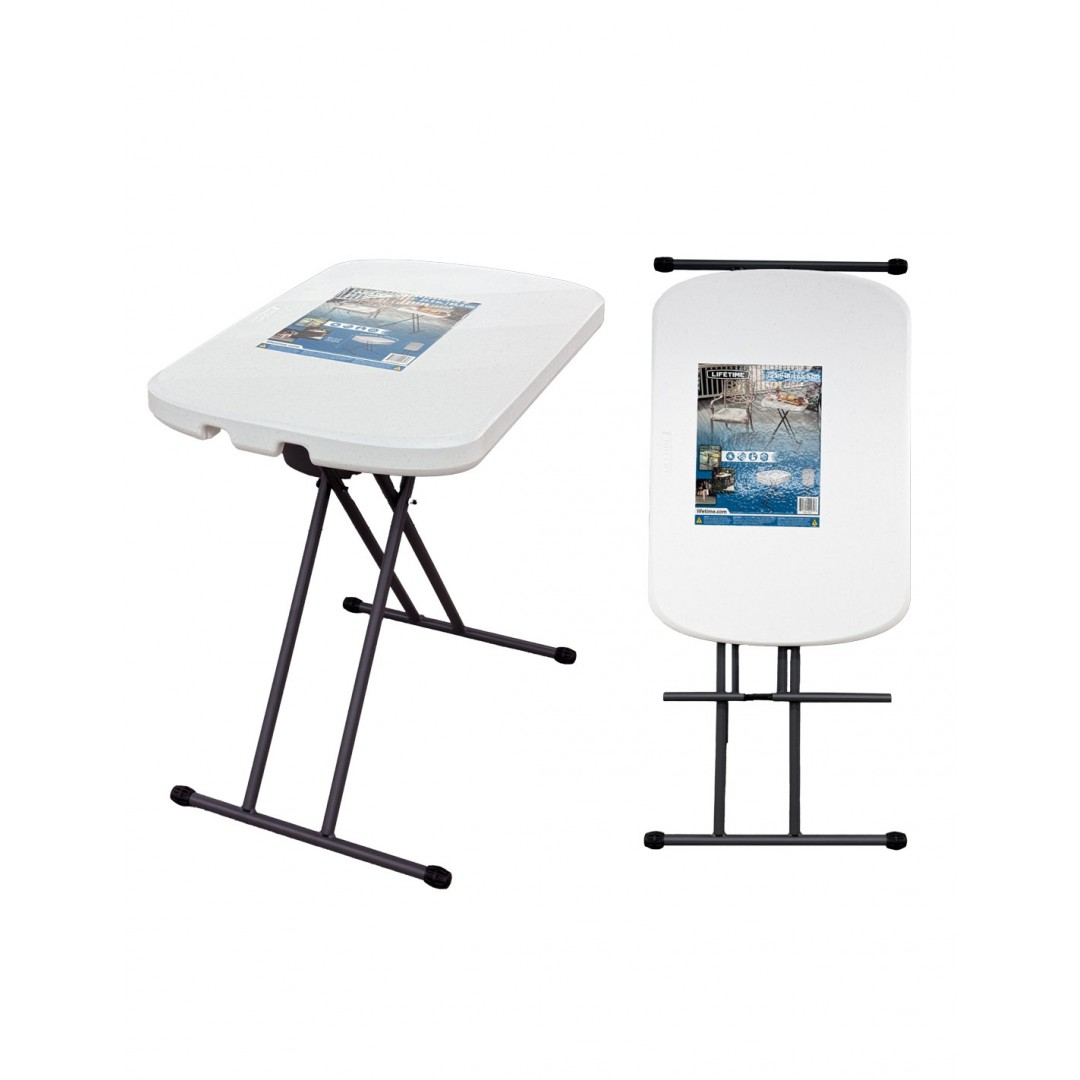 La mesa auxiliar plegable de Lifetime es ajustable en altura hasta en tres posiciones diferentes, ofrece versatilidad, facilidad de uso y portabilidad. Es un mueble multifuncional y práctico que se adapta a cualquier actividad diaria (como mesa auxiliar al lado del sofá, para servir el desayuno, como lugar de trabajo).