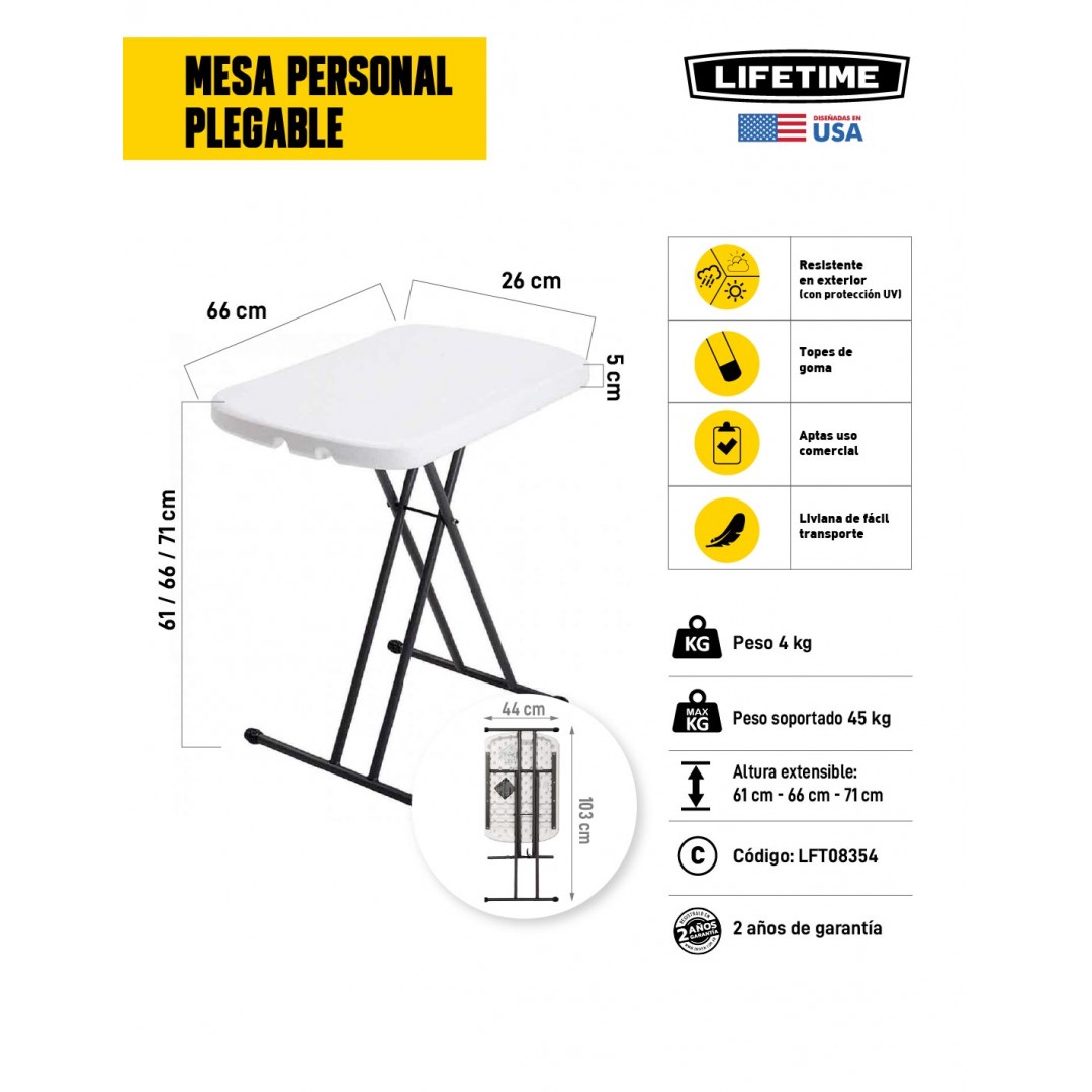 Información sobre la mesa auxiliar plegable Lifetime