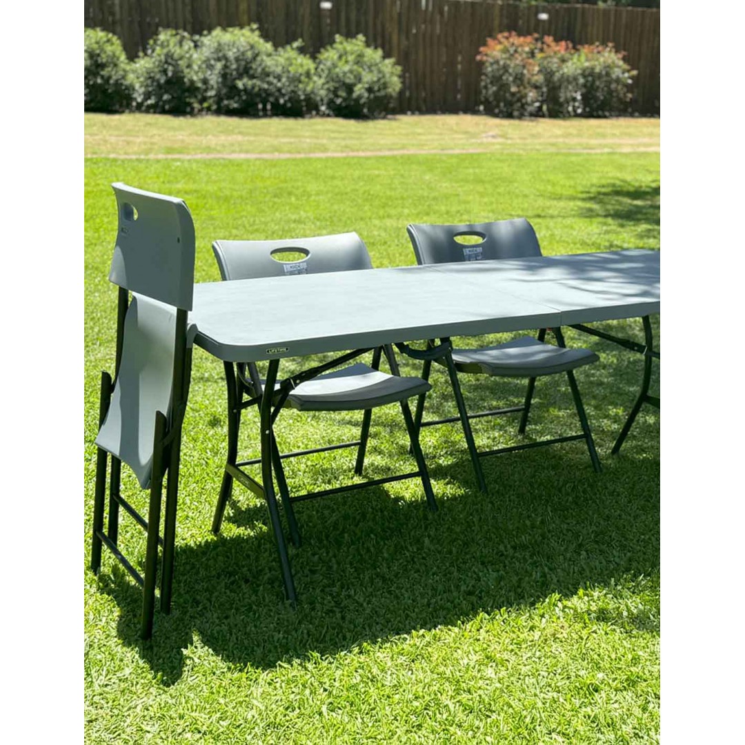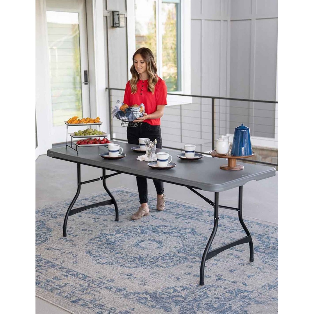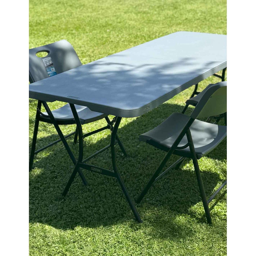 La mesa plegable de Lifetime es la solución perfecta para cubrir la falta de espacio en cualquier acontecimiento. Un mueble multifuncional y práctico que se adaptará a tus necesidades. Cuando termines de usarla, podrás abatir sus patas y plegar su tablero por la mitad para transportarla a cualquier lugar gracias a su peso ligero y al asa ergonómica incorporada, o guardarla hasta el siguiente uso. Es una mesa resistente y duradera, realizada en material premium con filtro UV, que no se desgasta ni se quiebra. No necesita mantenimiento y es ideal tanto para exterior como interior. Como todos los productos Lifetime, ofrece una calidad, resistencia y durabilidad inigualables.