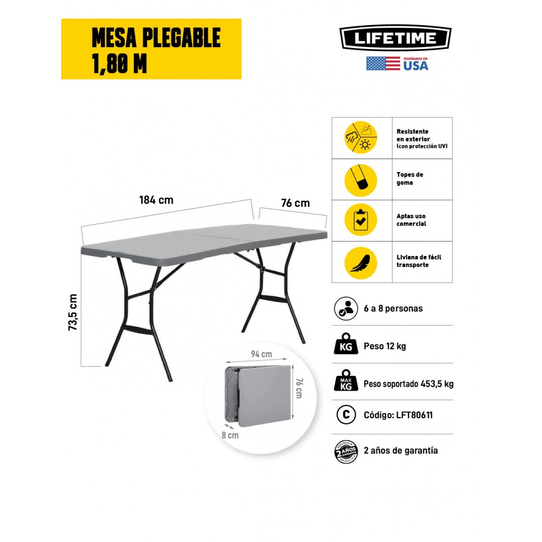 Información sobre la mesa plegable 1,80 m Lifetime