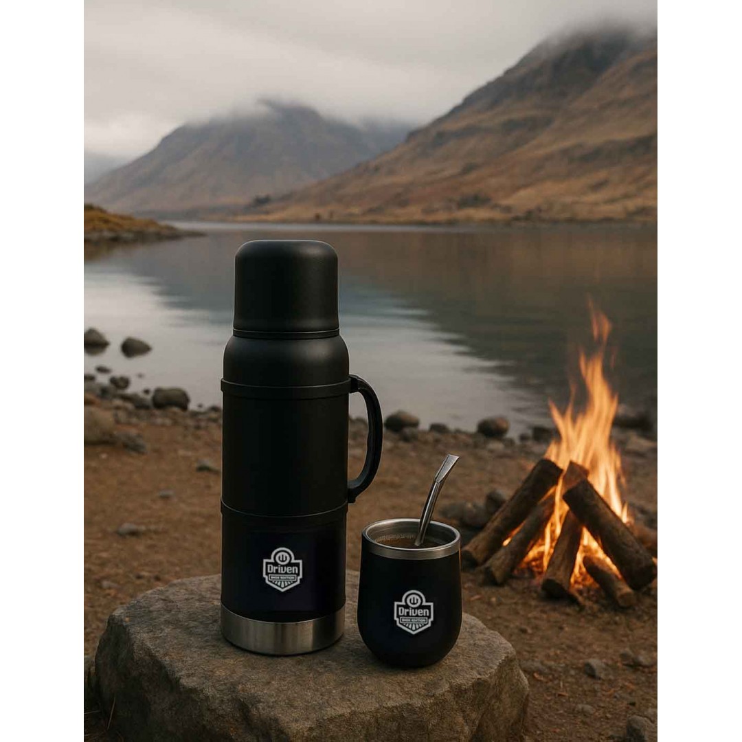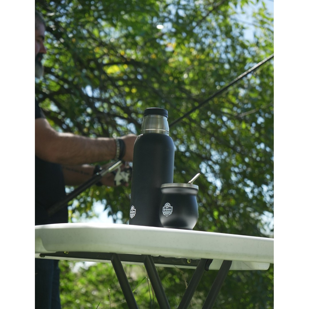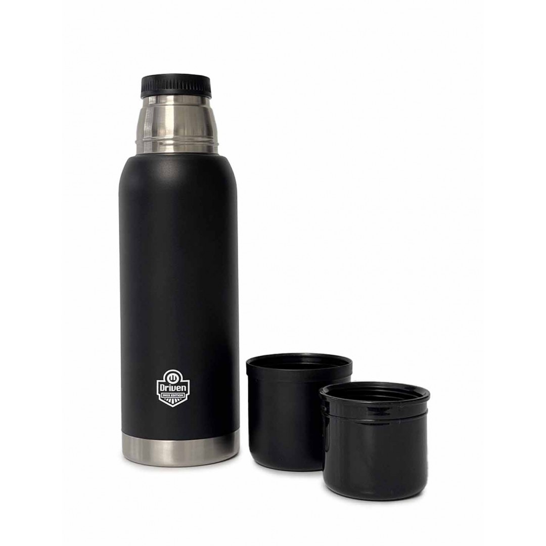Termo bala de acero inoxidable con doble capa de aislación y 1 litro de capacidad. Mantiene el frío y calor por 24 hs. Su tapa doble puede usarse como vaso o mate.